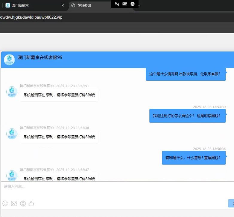 我在8022,com澳门新葡京 充值 300 元打 彩票澳运5,赢到 600 元时申请提现,却被平台取消,理由是 “系统检测套利”,要求我打 3 倍流水才能出款。我一直正常投注,没有其他操作,但无奈只能按要求继续打流水,后来我辛苦将流水打到 2400 元,赢了 900 多元再次申请提现,