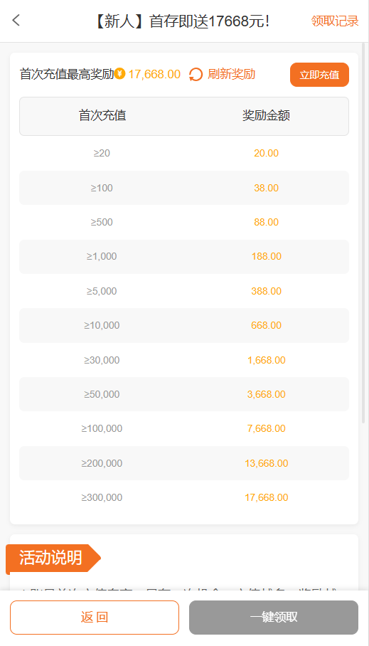 【礼赏会员①】20+20/100+38/500+88/1000+188,提款无限制!